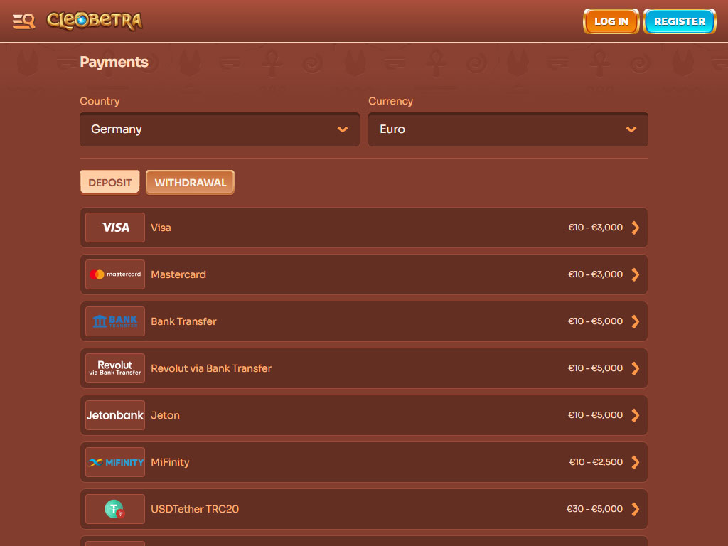 Verfügbare Auszahlungsmethoden bei Cleobetra