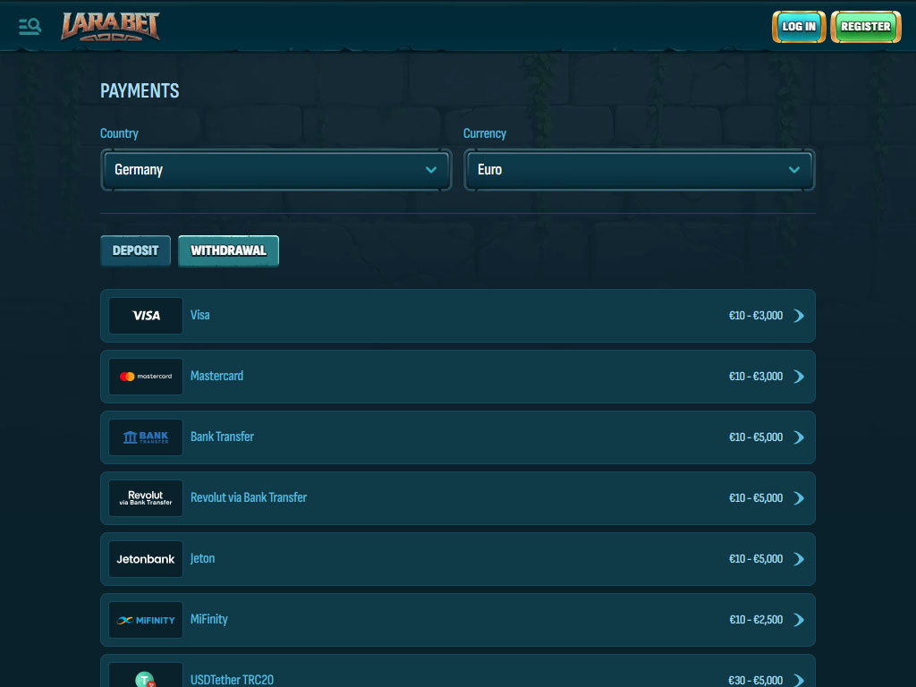Dieses Casino unterstützt mehrere Zahlungsmethoden für Auszahlungen, aber die Optionen mit der besten Leistung sind in der Regel E-Wallets und Kryptowährungen. Diese Methoden sind meist schneller, flexibler und bringen weniger Probleme mit sich als andere Verfahren.