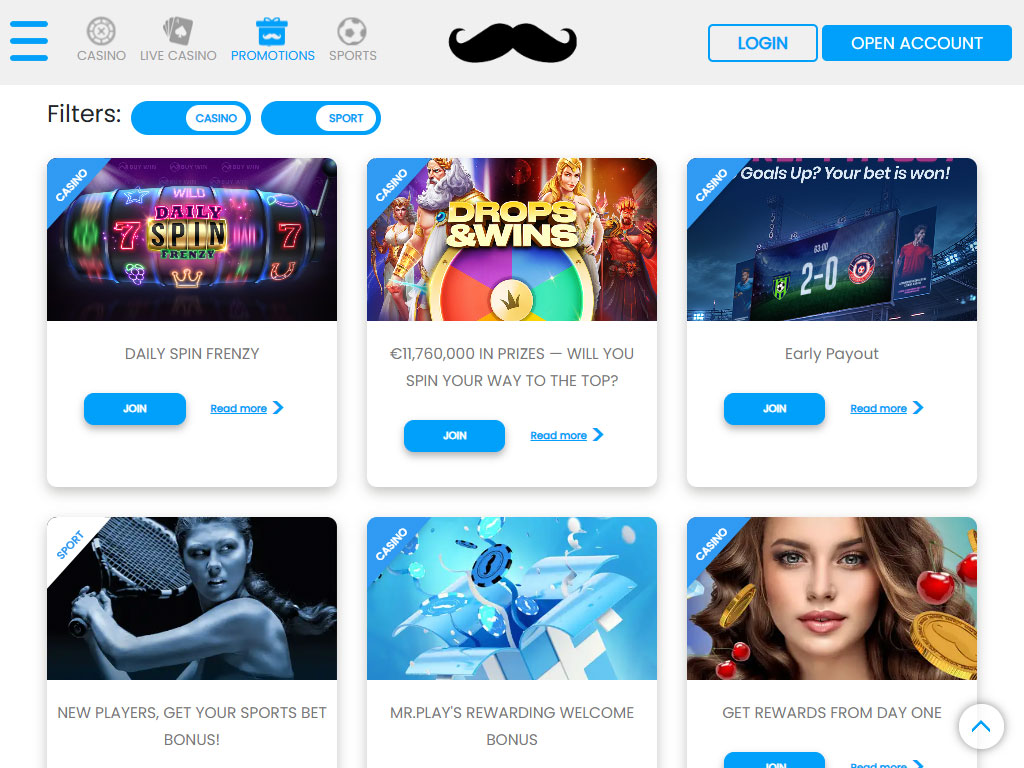 Mr.Play führt Verifizierungsprüfungen durch, wenn Spieler Einzahlungen tätigen oder Auszahlungen beantragen. Diese Prüfungen werden von den Lizenzbehörden verlangt, um die Identität zu bestätigen, Betrug zu verhindern und verantwortungsbewusstes Spielen zu fördern. In den meisten Fällen müssen Spieler lediglich einen gültigen Lichtbildausweis und einen Adressnachweis vorlegen, doch bei größeren Auszahlungen oder ungewöhnlicher Kontonutzung können zusätzliche Nachweise erforderlich sein.