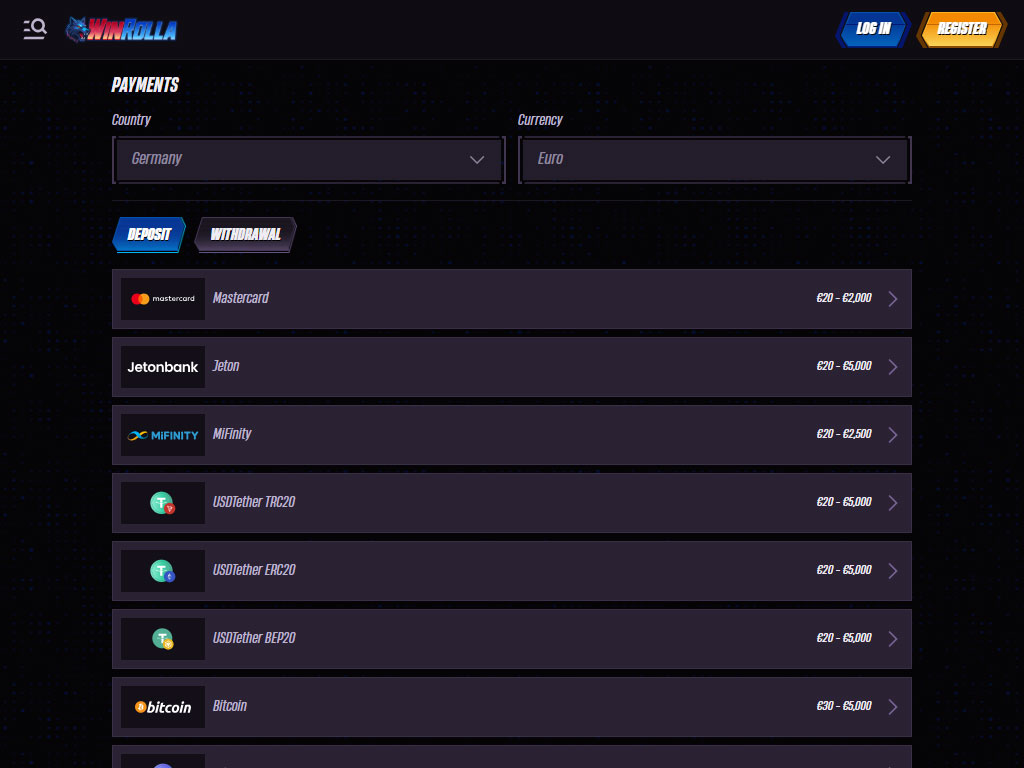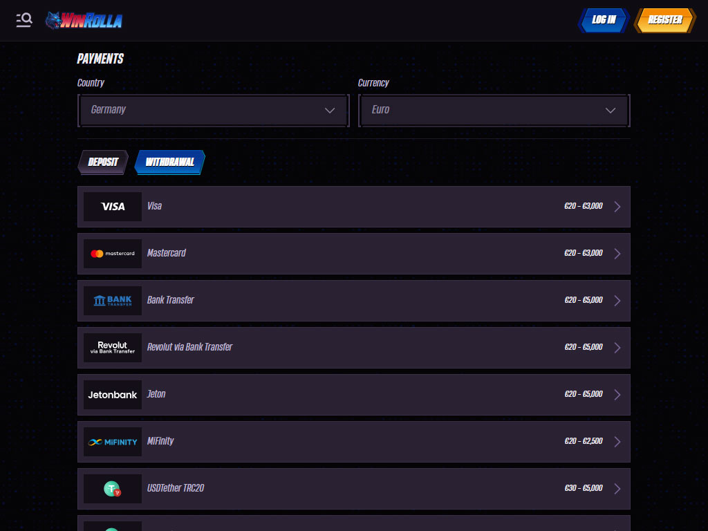 Verfügbare Auszahlungsmethoden bei Win Rolla