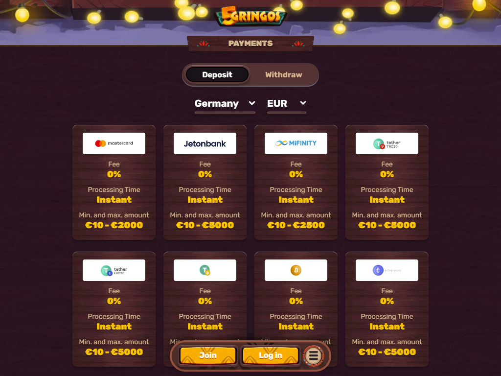 Καθώς αυτό το καζίνο εξυπηρετεί παίκτες από πολλές χώρες και λειτουργεί με υπεράκτια άδεια, είναι σημαντικό να επιλέγετε αξιόπιστες και ασφαλείς μεθόδους ανάληψης. Οι πιο αξιόπιστες διαθέσιμες επιλογές περιλαμβάνουν: