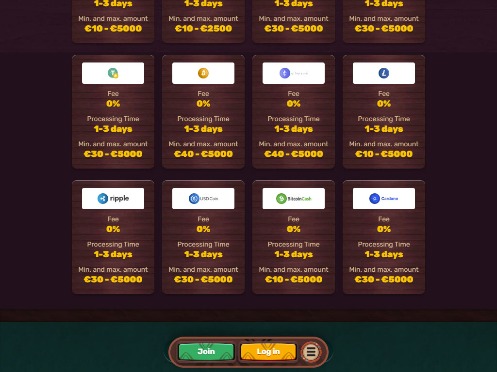 Αυτές οι επιλογές είναι δημοφιλείς λόγω ταχύτητας και ιδιωτικότητας. Οι συναλλαγές συνήθως ολοκληρώνονται γρήγορα μόλις εγκριθεί η ανάληψη από το καζίνο και δεν απαιτείται κοινή χρήση τραπεζικών στοιχείων. Το Litecoin και το Ripple τείνουν να επεξεργάζονται πιο γρήγορα και με χαμηλότερες χρεώσεις σε σύγκριση με το Bitcoin.