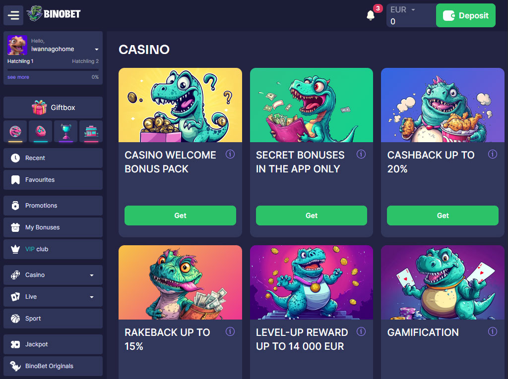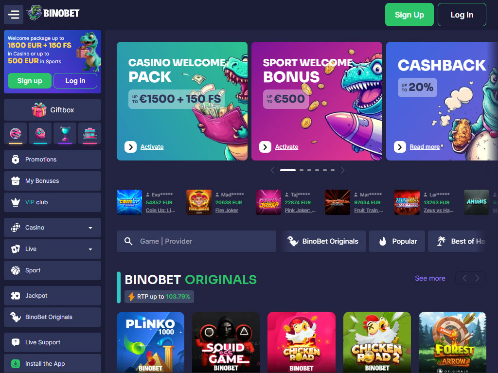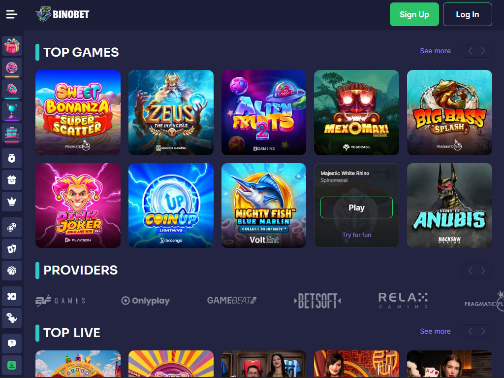 Το BinoBet είναι ένα διαδικτυακό καζίνο που μπήκε στην αγορά το 2025 με ένα μεγάλο κατάλογο άνω των 6.500 παιχνιδιών. Εκτός από την επιλογή παιχνιδιών, ο ιστότοπος προσφέρει πολλαπλά μπόνους και υποστηρίζει έναν συνδυασμό επιλογών πληρωμής, όπως ηλεκτρονικά πορτοφόλια, κρυπτονομίσματα, τραπεζικές κάρτες και τραπεζικά εμβάσματα. Τοποθετείται ως μια σταθερή επιλογή για Έλληνες παίκτες που θέλουν ποικιλία στα παιχνίδια και αξιόπιστη πρόσβαση σε γρήγορες μεθόδους ανάληψης.