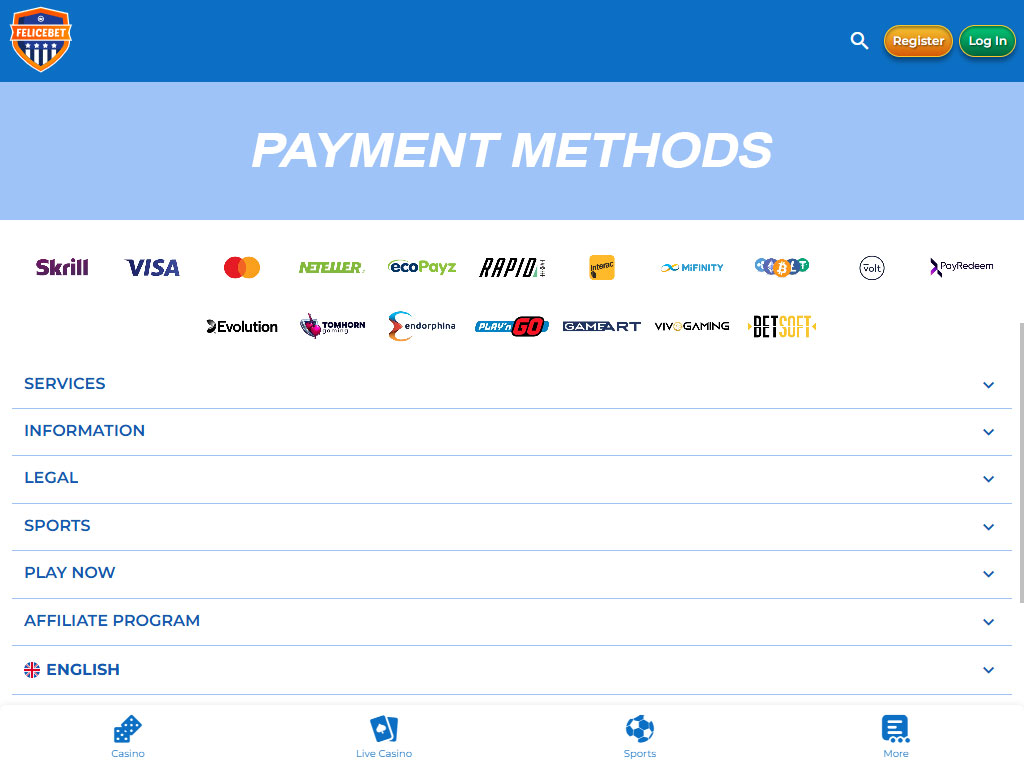 FeliceBet doesn’t publish exact withdrawal times for each payment method, but based on industry standards and the nature of the methods offered, average speeds fall into the following ranges:
