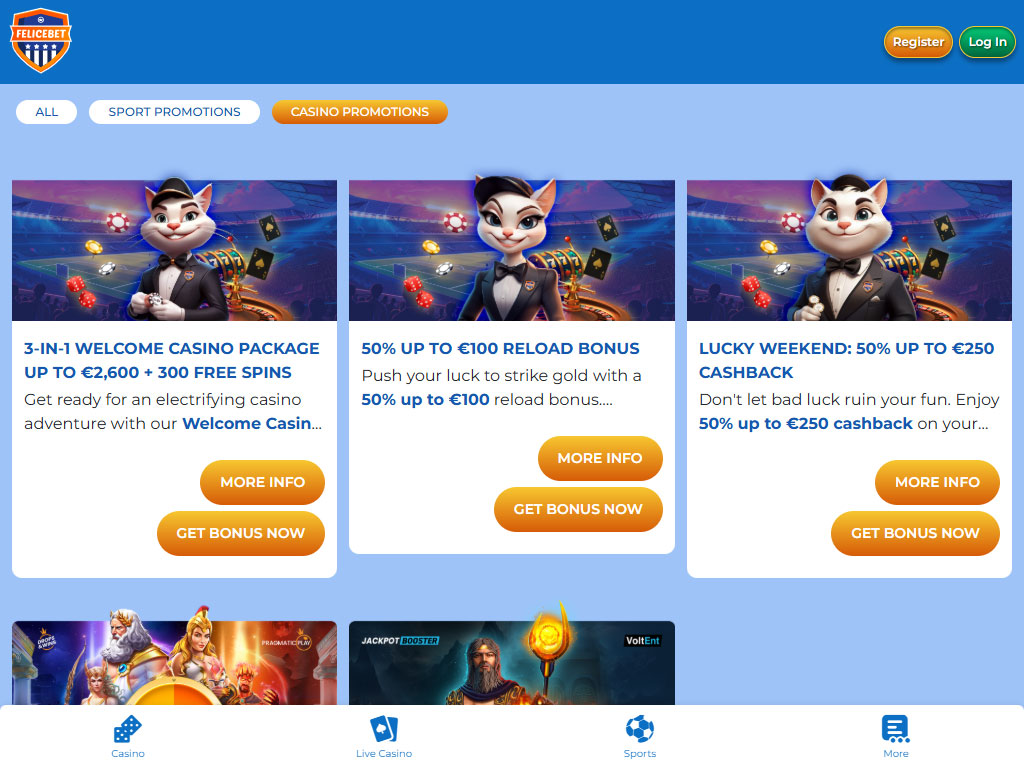 FeliceBet requires that deposits be wagered at least five times before you can withdraw. Failing to meet this condition may result in an 8% fee, with a minimum charge of €4. This applies even when no bonus is involved.